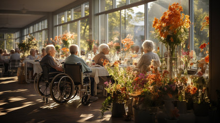 Elderly Support Network: Multiracial Nursing Home Scene