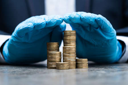 insurance with hands protect crisis. business risk control and plan and strategies to run prevent businesses. deposits, medical expenses, rent, family care, Travel, transport, communication, accident