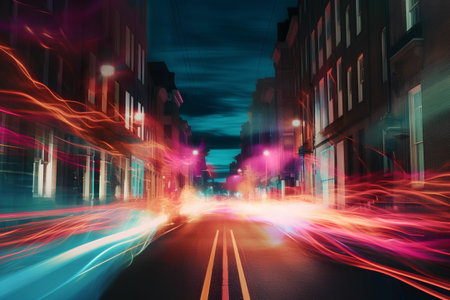 Vibrant Streaks of Colorful Lights Create an Abstract Pattern Capturing City Traffic at Night