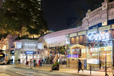 HONG KONG - JANUARY 31, 2015: Luxury elite stores on streets of night city. Hong Kong is popular tourist destination of Asia and leading financial centre of the world.