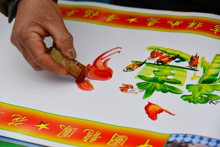 \Notebook with Chinese words \\Happy New Year\\ and peonies\