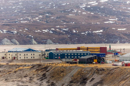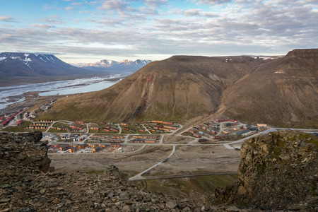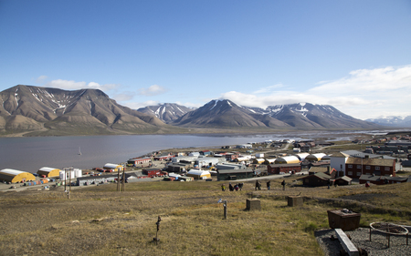 Longyearbyen Norway September January 2011: View to the town of Longyearbyen with the abandoned coal mine at the foreground Norway.