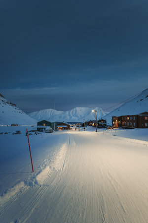 Snowy road in the arctic in Longyearbyen, Svalbard