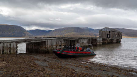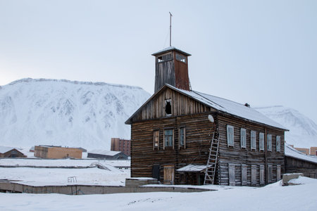 Old port sea office building in Barentsburg, russian settelement on Svalbard, Norway