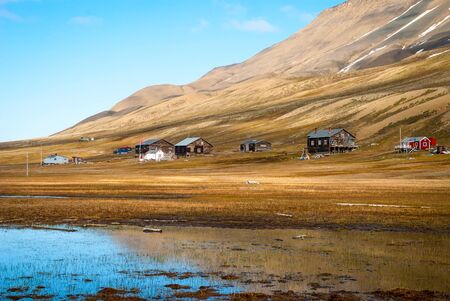 Remote scandinavian houses close to Longyearbyen, Svalbard