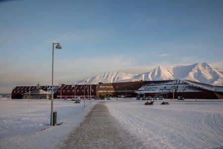 Longyearbyen, Svalbard in Norway - March 2019: The University Center, Svalbard Science Center - UNIS - and Svalbard Museum. Located in Longyearbyen.