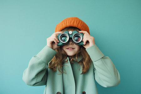 a young girl kid looking through binoculars