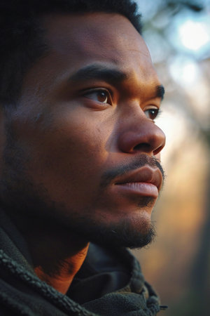 Portrait of a young African American man in a park in autumn