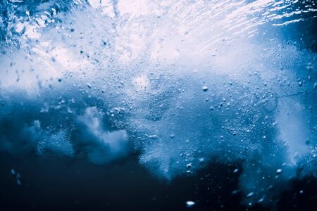 Underwater wave crashing in ocean. Transparent sea water underwater