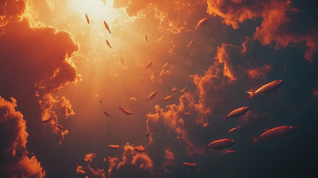 This breathtaking underwater scene features fish swimming gracefully through sunlit waters, showcasing the vibrant beauty of aquatic life mixed with stunning light effects.