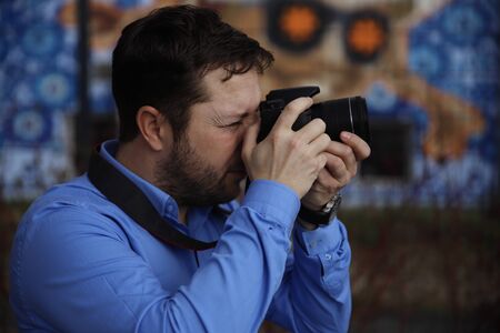 Man photographing with a camera. close-up