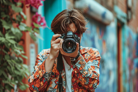 A person taking a photograph with an SLR camera created with Generative AI
