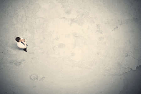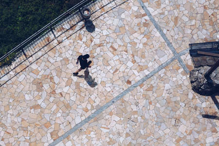 aerial view of a young boy with old marble ground