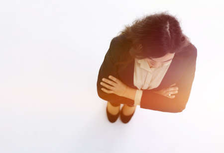 view from above. young business woman looking forward