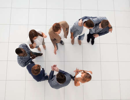 top view.a group of employees standing in the lobby of the office