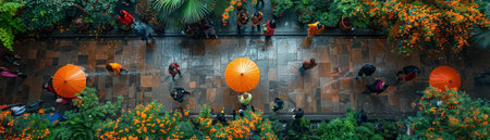 Aerial view of a bustling city street filled with pedestrians, illustrating the vibrant flow of urban life and the constant movement within a metropolitan environment