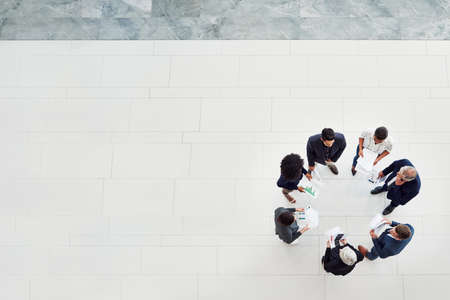 High angle shot of a group of businesspeople going through paperwork together