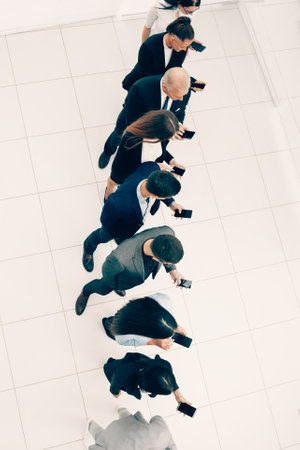 top view. diverse business of people standing in line for interviews.
