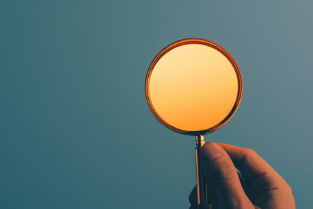 Close-up of a hand holding a magnifying glass, symbolizing focus and the quest for discovery in a blurred background.
