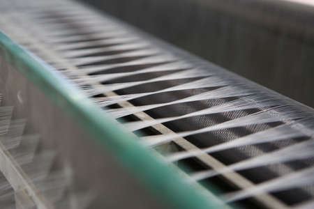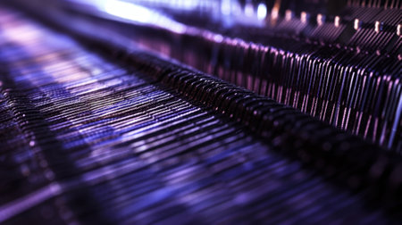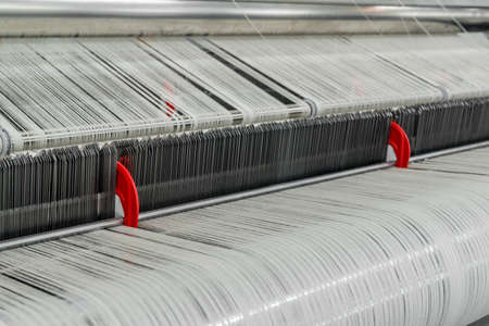 Multicolored straight strands texture background, sewing equipment, loom equipment at a garment factory