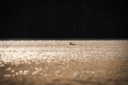 Common loon at sunrise in Maine