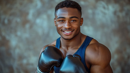 Portrait of a smiling african american boxer wearing boxing gloves
