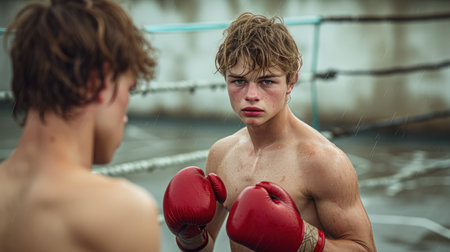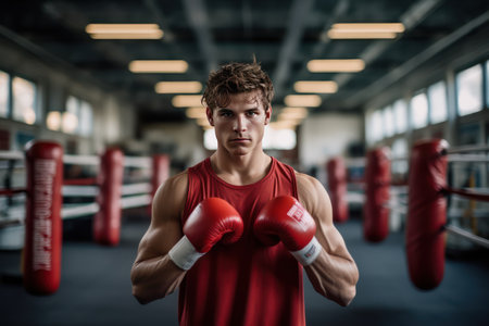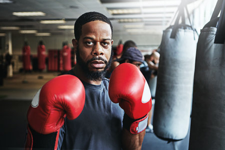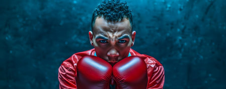 Focused athlete embodies determination in boxing stance ready to compete. Concept Sports Photography, Boxing, Determination, Athlete, Competition