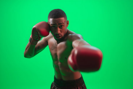 Powerful boxer throwing a punch on chroma key background, perfect for compositing and visual effects