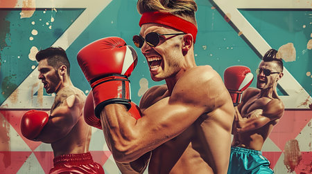 Young man boxing. . Mixed media