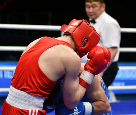 Orenburg, Russia - May 7, 2017 year: Boys boxers compete in the Championship of Russia in boxing among Juniors, born 1999-2000