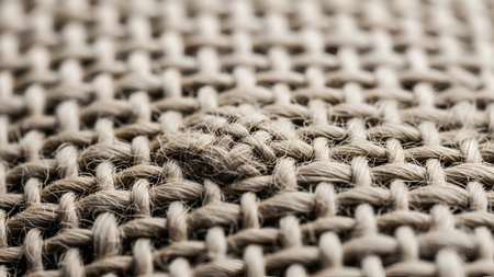 A close-up macro photograph showcases the intricate texture of woven fabric.