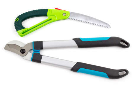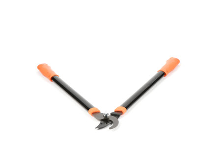 Pruner for pruning large branches, twigs and knots. Garden Tools. Isolated on white background. High resolution photo. Full depth of field.