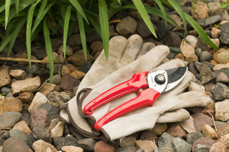 Garden shears for cutting branches, flowers and shrubs on the floor