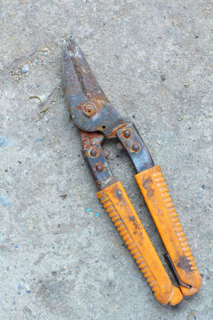 pliers and scissors for metal for techno gherenonta, the old tool has not been used for a long time and therefore rusty, corroded, mud and rusted with a metal hand tool