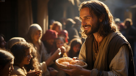 Jesus gives bread to the poor