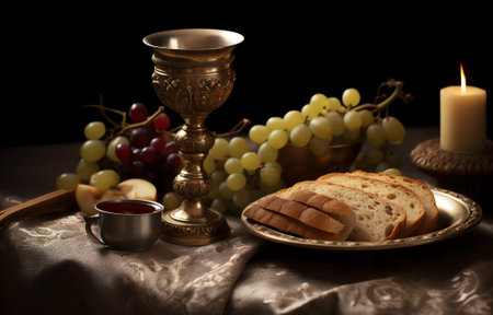 Generative AI : Easter Communion Still life with chalice of wine and bread