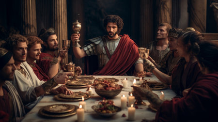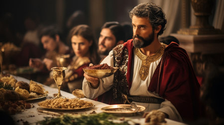 Roman Emperor participating in a lavish Roman banquet