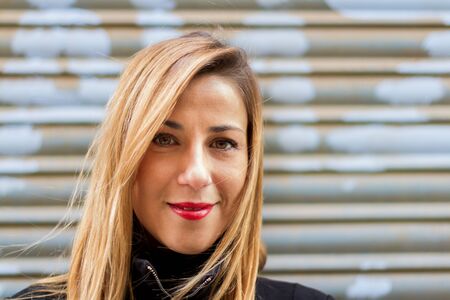 Woman With Blonde Curly Hair Smiling at Camera Indoor Portrait