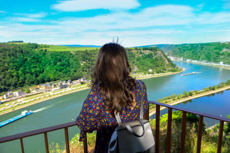 Braubach, Germany - July 07, 2018: View of the Rhine Valley from the fortress of Marksburg