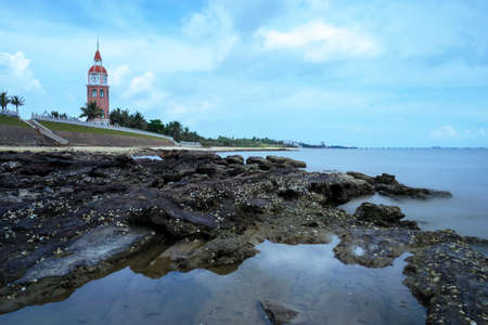CATANIA, ITALY - OCTOBER 3, 2019: low angle view of clock tower of Saint Agatha cathedral