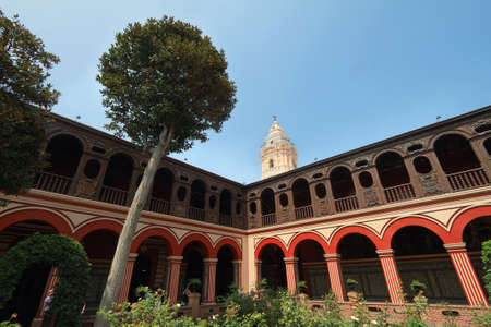 LIMA, PERU - APRIL 19: view of columns of the first cloister of the Santo Domingo convent on April 22, 2015 in Lima, Peru. The convent was built in the sixteenth century