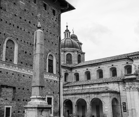 Urbino, Italy - March 20, 2015: The Cathedral dome with the Palace in the left foreground
