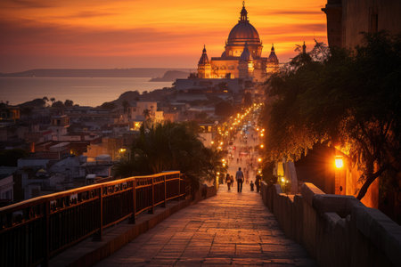 Magic Scenario Cartagena, Colombia, town walled at sunset., generative AI