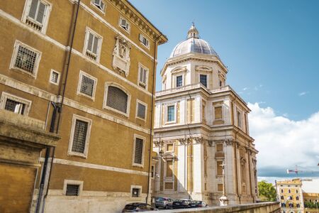 Rome, Italy - October 3, 2019: View of the traditional and classical roman architecture of the Basilica of Santa Maria Maggiore.