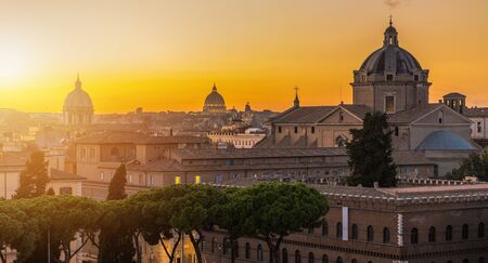 Rome and Vatican City Panoramic Early Fall Scenery. Famous European Travel Destination.