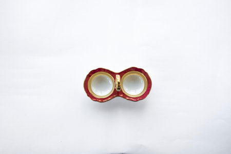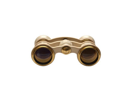 Antique opera glasses isolated on a white background. Also called theater binoculars or Galilean binoculars. They provide low power optical magnification, and were traditionally used at the opera for to get a better view of the performance. They are sh