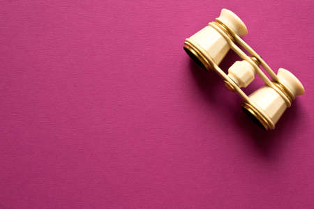 Vintage theatre binoculars on a purple background.