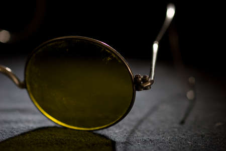 A macro shot, showing a pair of vintage sunglasses.