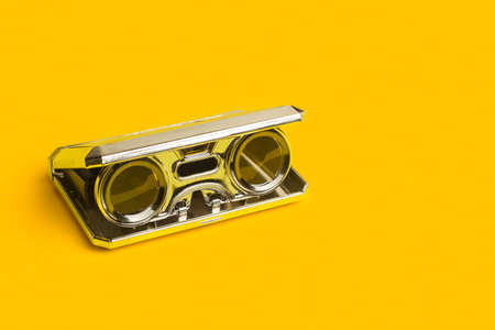 A pocket magnifying glasses on a yellow background with copy space