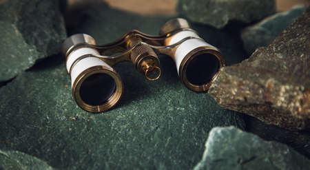 white binoculars on the color stones background